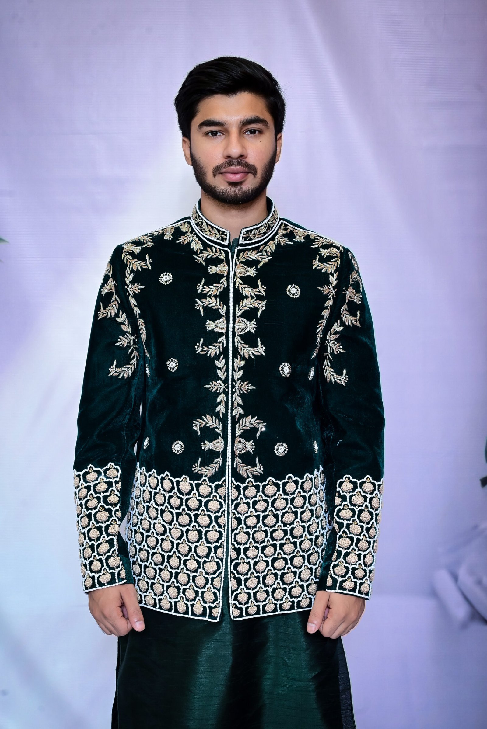 "Radiant, Festive, and Bold. This Burnt Orange Prince Coat features striking Art-Deco detailing, perfect for celebratory daytime events."